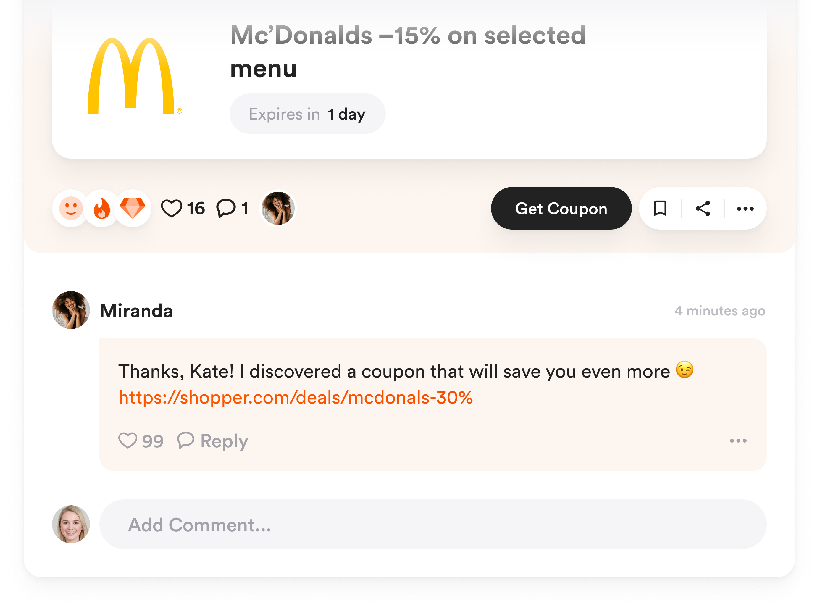 From one side, our product must be a hub, where shoppers will share discount and collaborate to control accuracy and discover even better bargains.