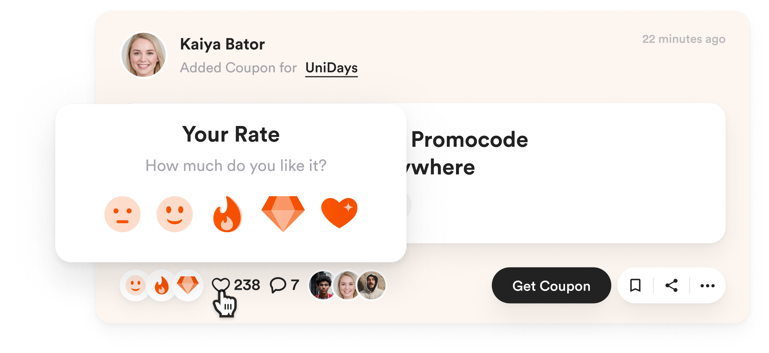 From the other side, our product supposed to be a tool for influencers to manage and share shopping recommendations with fans. Why influencers? Answer: To fill our platform with legendary coupons.