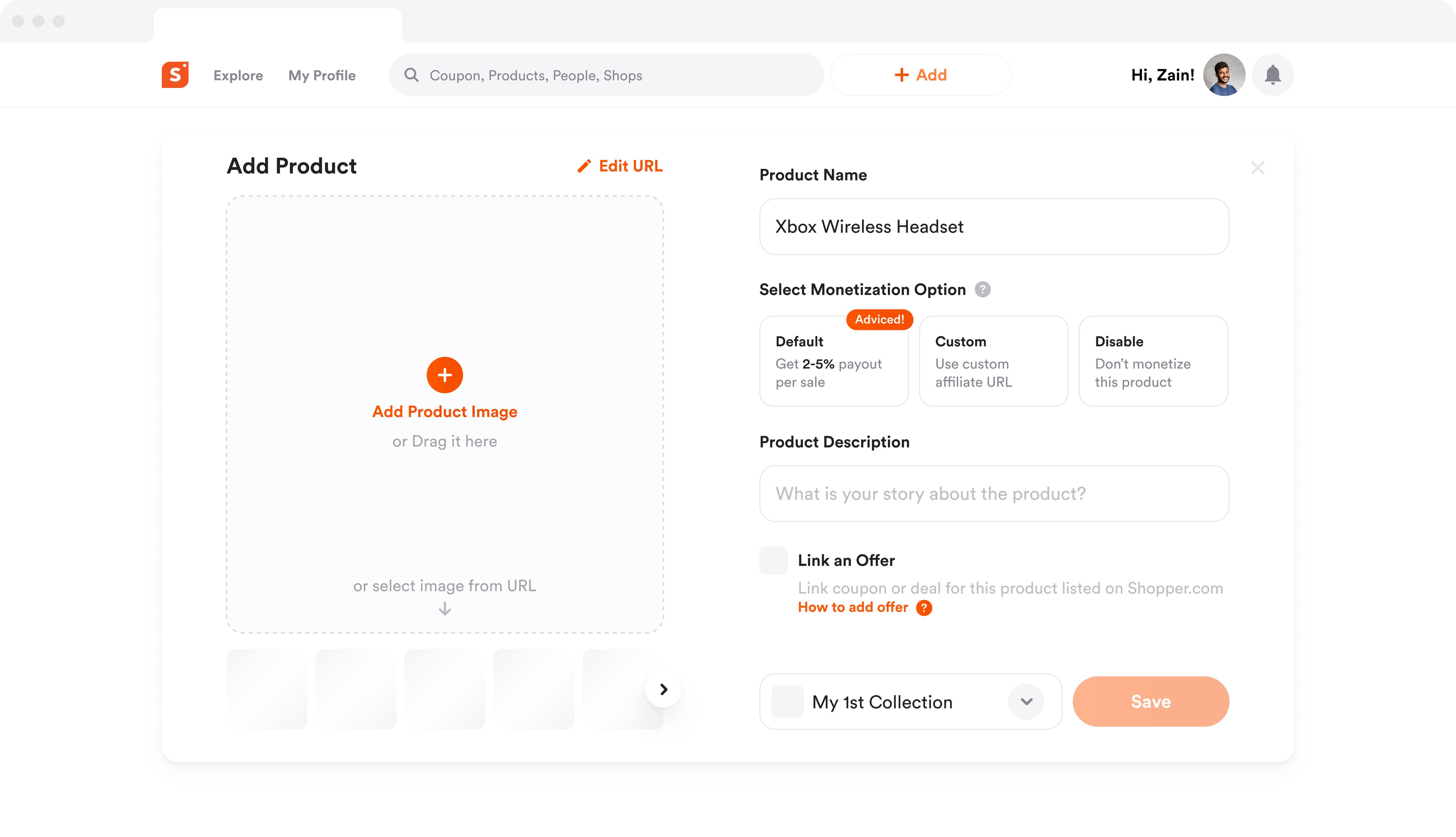 Creators can use their own affiliate links or enable Shopper.com’s monetization to earn from thousands of stores.